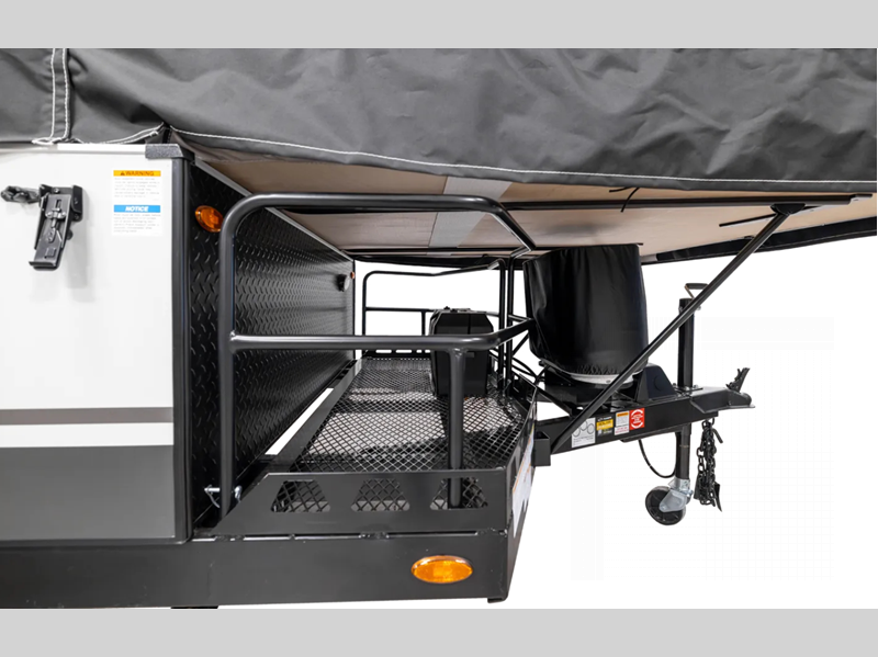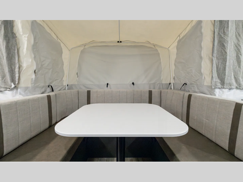 The Freedom Series will elevate your camping experience providing you a quality camper to maximize your tent camper investment. You will love the convenience of the powered roof lift for easy set-up and four stabilizer jacks for in camp stability.  You will also enjoy a MaxxAir fan for ventilation included in the Core Convenience Package, along with an awning with LED lighting, a 12V refrigerator with a 100W roof solar panel plus more!
