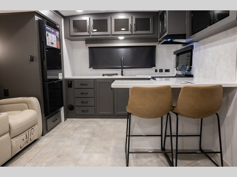 Sleeps 4 Slides 3 Length 36 ft 8 in Ext Width 8 ft Ext Height 11 ft 7 in Hitch Weight 1358 lbs Dry Weight 9539 lbs Cargo Capacity 1819 lbs Fresh Water Capacity 54 gals Grey Water Capacity 122 gals Black Water Capacity 53 gals Furnace BTU 35000 btu Available Beds King Refrigerator Type 12V Cooktop Burners 3 Number of Awnings 2 LP Tank Capacity 30 Lbs. Water Heater Capacity 6 gal Water Heater Type Quick Recovery Gas/Electric TV Info LR Smart TV Awning Info 10' & 15' Power w/Rain Dump and LED Lights Axle Count 2 Washer/Dryer Available Yes Number of LP Tanks 2 Shower Type Shower w/Seat Electrical Service 50 amp Solar Wattage 200 watts Similar Floorplans