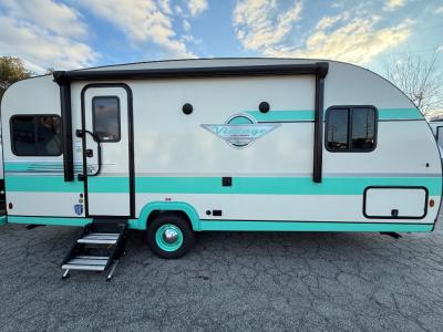 With any Vintage Cruiser by Gulf Stream you will be taken back to the fun of the 50's with vintage exterior graphics and classic interiors. Each model is constructed with a six-sided welded aluminum frame, vacuum bonded sidewalls with Azdel, and a vintage painted bumper you are sure to love. The Vintage Cruiser travel trailers include high-performance vinyl flooring, LED interior ceiling lights, a seamless tub/shower surround, and vintage flat cabinet doors to name a few comforts you'll find throughout. Some of the stand-out features found within the Vintage Package include a tankless water heater, a 100W roof-mounted solar panel with a controller, Goodyear Endurance tires, and more!